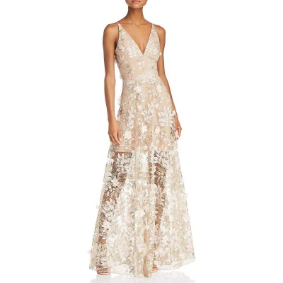 Dress the Population Women's Embellished Low-cut Gown Sleeveless Floral Maxi Dress