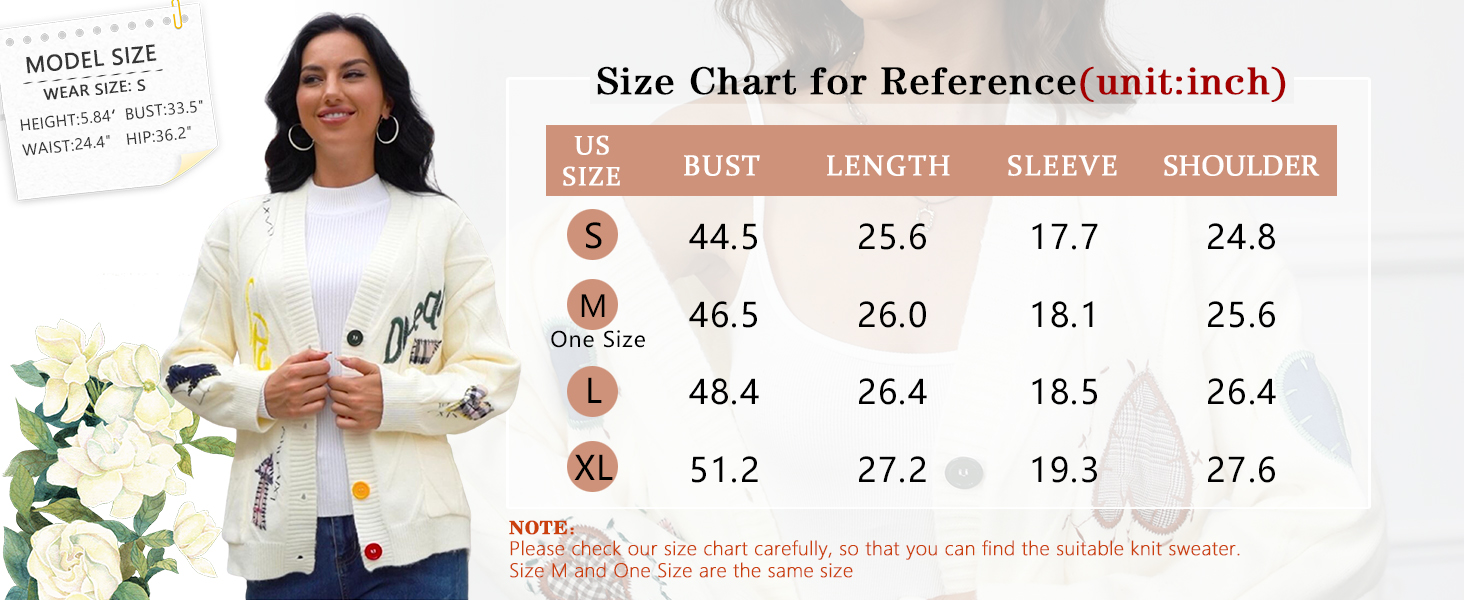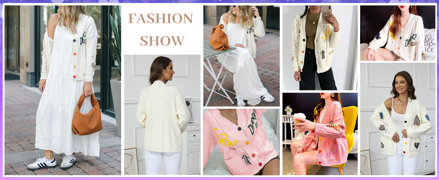 Casual loose cable knit jacket with letter embroidery, easy to match with shirts, T-shirts, tops, high-waist jeans, shorts, skirts or leggings
