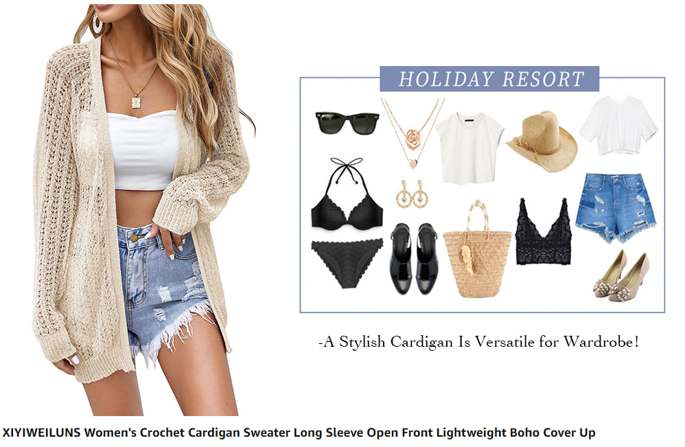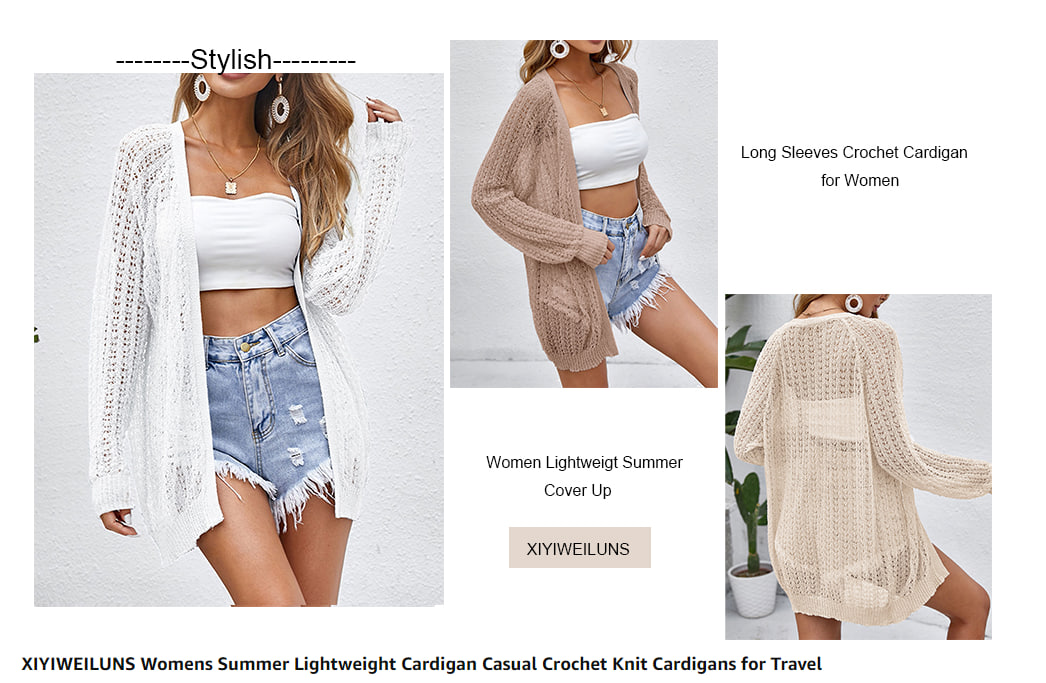 Knitted cardigan: It is also a good knitted cardigan to match with swimsuit or bikini set, suitable for beach vacation.